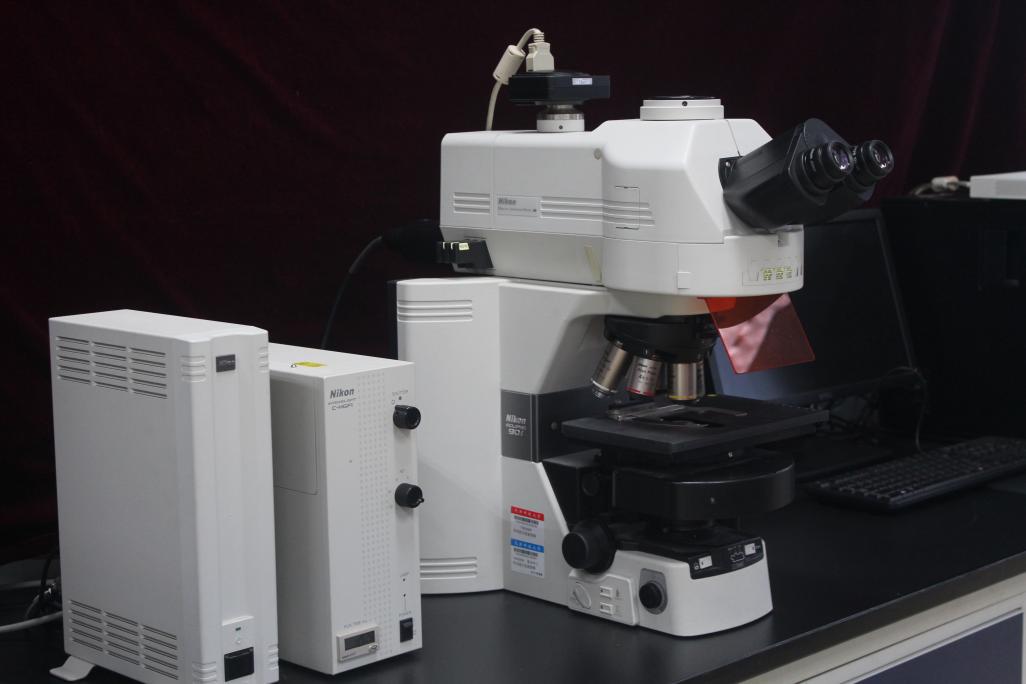 海洋与环境学院大型仪器共享平台研究级万能显微镜为尼康ECLIPSE 90i,具有普通的明场观察、落射荧光及微分干涉功能,主要用于细胞结构及细胞器的精细观察,包括细菌、细胞内的细胞核、叶绿体、线粒体等细胞器的动态变化进行观察研究以及相关数据信息的采集。