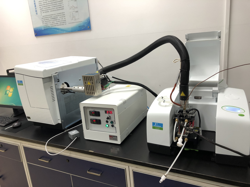 原位傅里叶红外光谱-质谱联用仪(FTIR-MS),原位红外技术是在传统红外光谱仪上加装了特定的高温高压原位反应池,可实时监测反应微观动态信息,得到系列的以时间或其它相关条件(温度、压力等)为参数的测定结果,通过对化学反应进行实时观察来了解反应状态下的物质结构,形态等性质,是模拟和研究反应过程的有效手段之一。将加装原位池的红外光谱仪与质谱仪通过特定的传输管线实现连接,红外光谱仪高温高压原位反应池中的逸出气体可以通过管线进入到另一端的质谱系统当中,对反应逸出气体进一步定性分析,结合高分辨质谱的优点,可以对一些在红外中无法识别的微量成分也具有较好的识别鉴定效果。原位傅里叶红外光谱-质谱联用技术具有连续原位测量、速率快、灵敏度高、无损分析等优点。